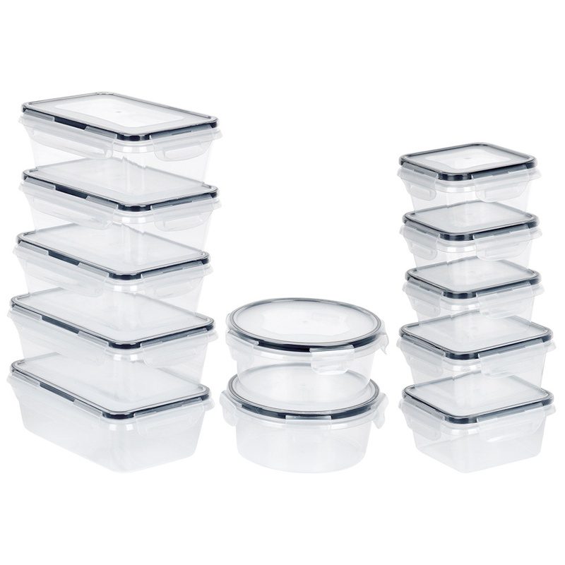 12 darabos élelmiszertároló doboz szett fedéllel és gumitömítéssel. Légmentesen záródó műanyag tárolók különböző méretekben, hűtőbe, fagyasztóba és mikrohullámú sütőbe is alkalmas kivitelben. Ideális ételtároláshoz és rendszerezéshez a konyhában.