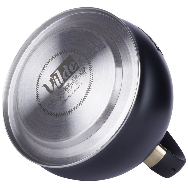 Sípoló vízforraló kanna 3 literes rozsdamentes acél kivitelben, matt fekete színben. Energiatakarékos accuthermic talp, automatikus síp és soft touch fogantyú. Használható gáz-, elektromos-, kerámia- és indukciós tűzhelyen. Elegáns és praktikus megoldás tea és kávé készítéséhez.