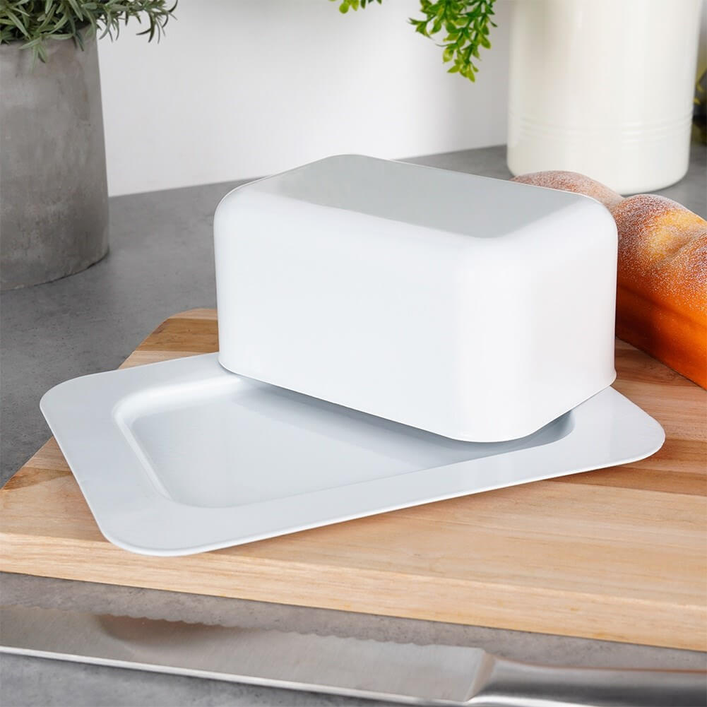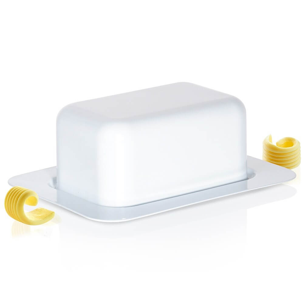 Teljesen acélból készült fehér matt vajatartó. Tökéletes a vaj tárolására és tálalására. Klasszikus formája illeszkedik bármilyen étkészlethez.